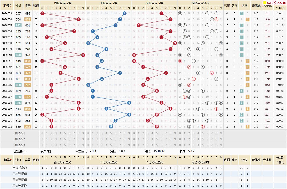 首页 > 排列3预测 > 023期体彩排列3近期历史号码图表
